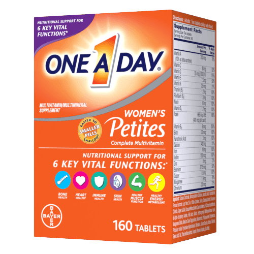 In a smaller, easy-to-swallow tablet, One A Day Women’s Petites supports bone health, immune defense, and healthy energy metabolism for women.