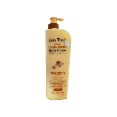 Easy Tone Natural Cocoa Butter Body Lotion (428ml) is a nourishing body lotion that hydrates deeply, softens rough skin, and improves smoothness and suppleness.
