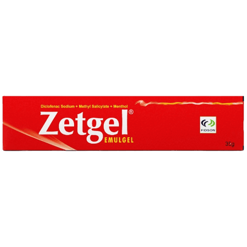 Fidson Zetgel Emulgel features a clinical Diclofenac, Methyl Salicylate, and Menthol formula. This gel effectively supports relief from pain.