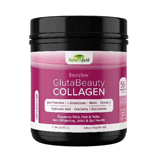 To support skin elasticity and brightening, BeautySure GlutaBeauty Collagen provides a clinical blend of L-Glutathione and Hyaluronic Acid.