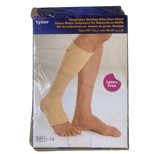 Tynor Compression Stockings feature a classic below-knee therapeutic design. These stockings effectively support improved blood circulation.