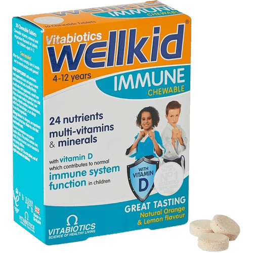 Vitabiotics Wellkid Immune Chewable provides essential vitamins and minerals. It supports immune system function and growth in kids aged 4 to 12.