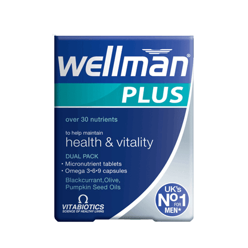 To support heart and immune health, Vitabiotics Wellman Plus provides advanced multivitamins and a 3-in-1 Omega capsule with fish, blackcurrant, and olive oil.